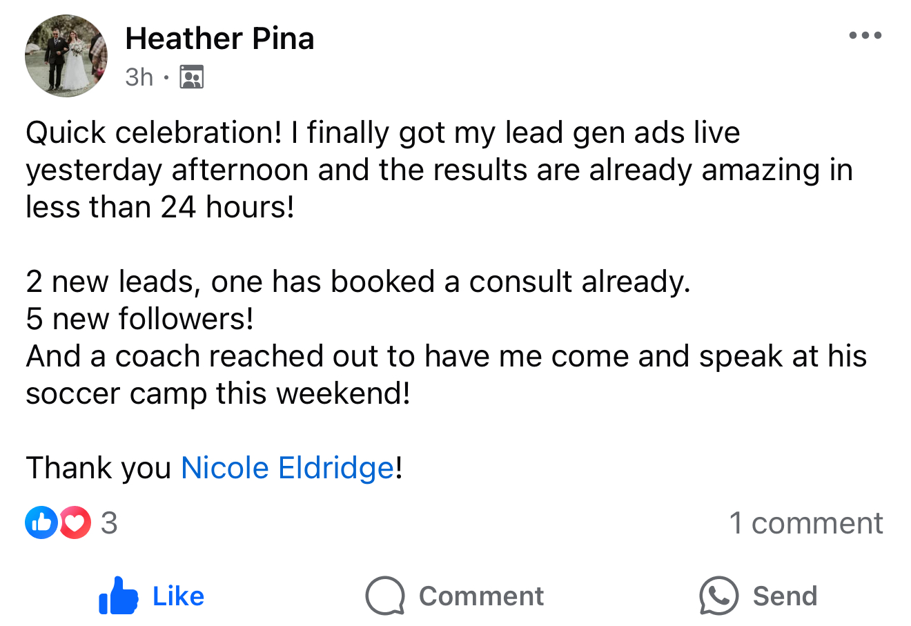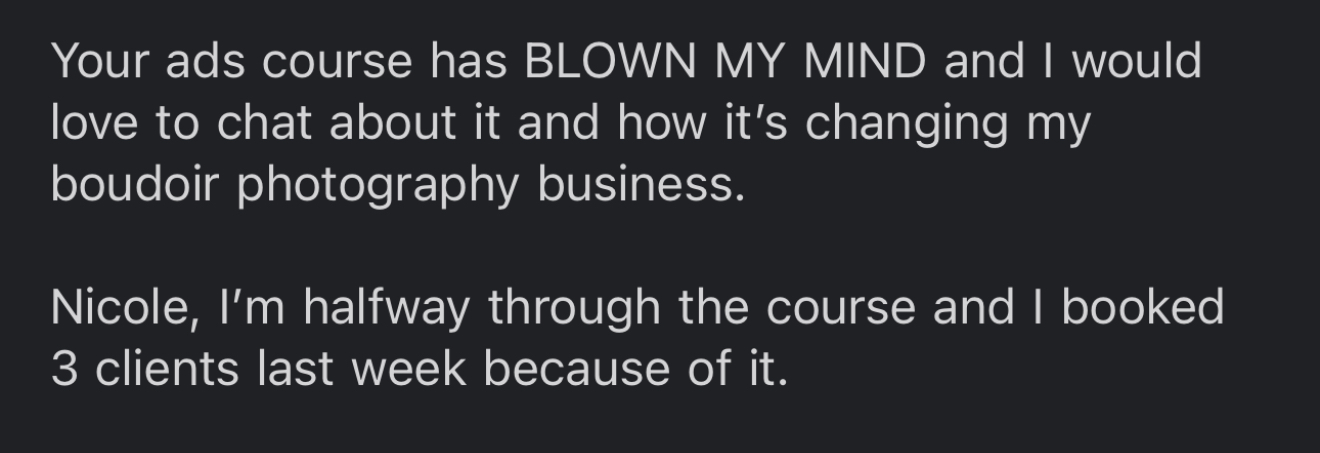 "Nicole's step by step process of how to launch ads was a game changer for me"