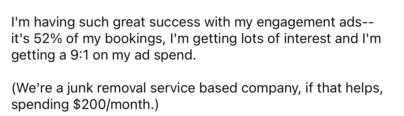 Launch the kinds of ads that get DMs, bookings, or walk-ins. You’ll get personal feedback on your copy + creative.