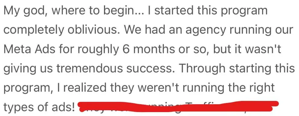 You get high-touch support from someone in the trenches (not a guru who "used to" run ads, or a beginner)
